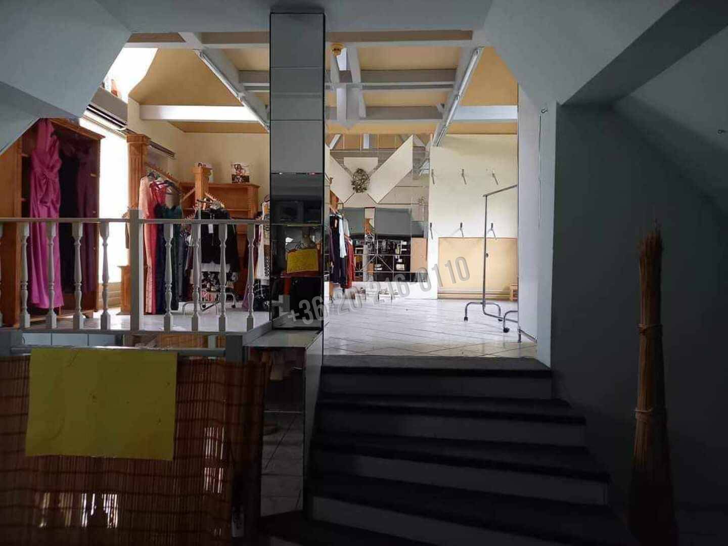 Az 1980-as években épült üzletháznak két bejárata van. A fűtést gázkazán, a meleg vizet átfolyós elektromos vízmelegítő biztosítja. A földszinten egyfázisú, az emeleten háromfázisú villanyóra található. Mind a földszinti, mind az emeleti rész tágas, a nagy ablakoknak köszönhetően pedig természetes fény világítja be a helyiségeket. A két szintet galéria köti össze.