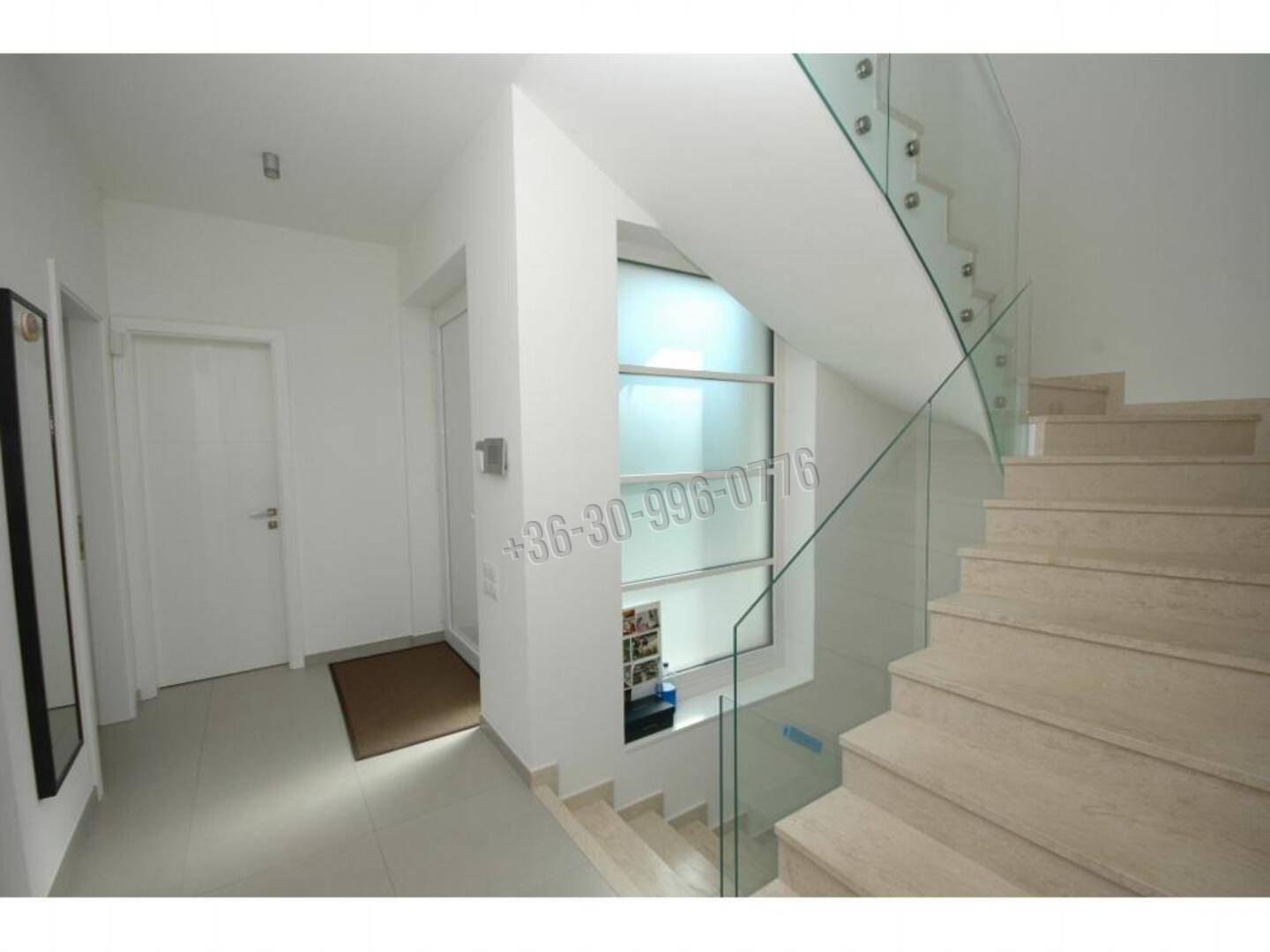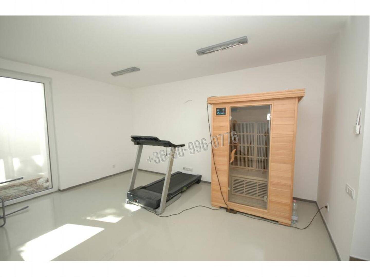 Extrák: Padló és mennyezet hűtés-fűtés, a hűtés geotermikus. Automata zsalúzia, a nappaliban kandalló, az alagsorban lévő tágas fitneszteremben infraszaunával és fürdőszobával, elektromos kapuval, automata öntözőrendszerrel, teljesen gépesített konyhával, 3 rétegű thermo ablakokkal.