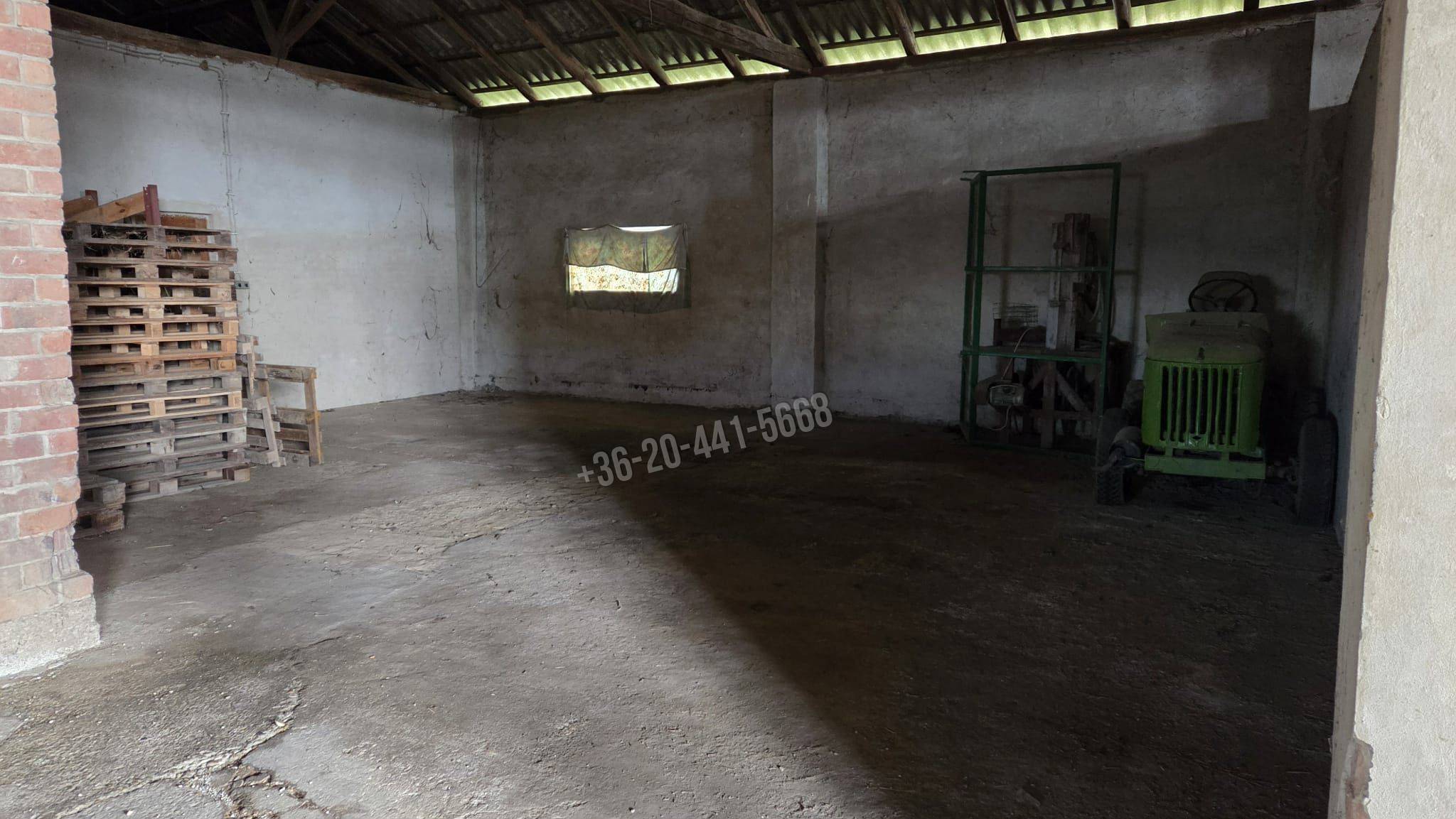 Raktárnak, telephelynek, műhelynek, mezőgazdasági célra kiválóan alkalmas, lakhatási célra nem hirdetett, azonban az épületen belül alap kiszolgáló lakrész található.