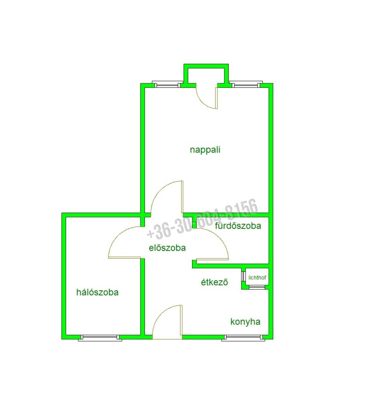Helyiségek: előszoba – konyha – étkező, nappali, szoba, fürdő, erkély