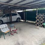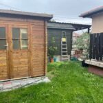 Előkertben fedett autóbeálló,hátsó és oldalsó kertben tárolók.