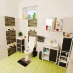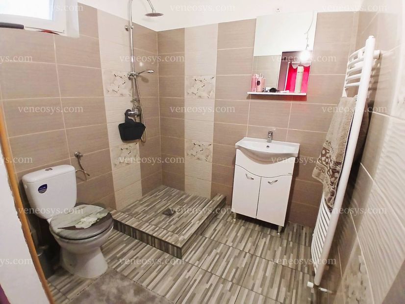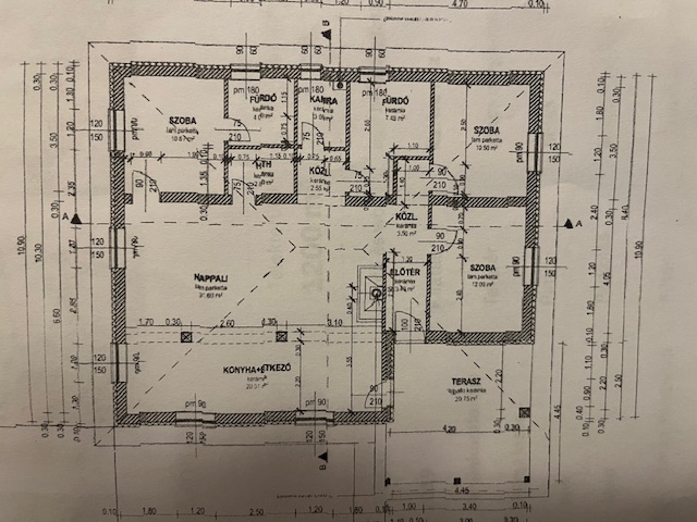 Ház elosztása: előtér, amerikai konyhás nappali, 3 külön bejáratú szoba, 2 fürdőszoba, kamra.
