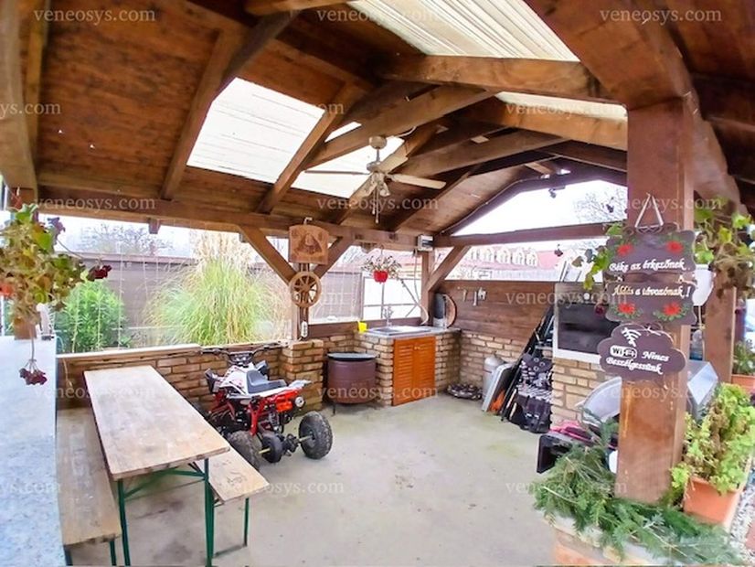 Fedett kerti sütőhely kemencével,mosogatóval.Gyerekjátszótér,medence,teraszon 6 személyes jakuzzi.