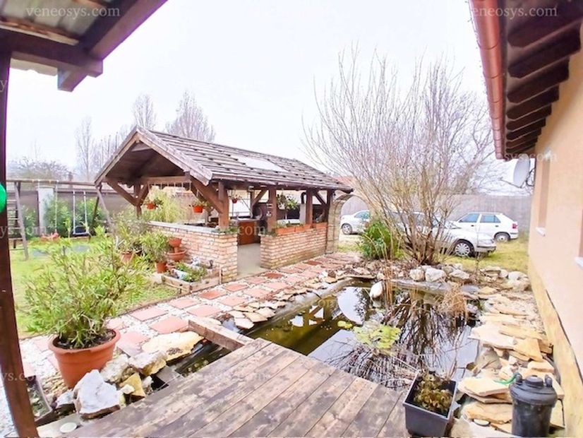 Szigethalmon Vadaspark közelében 2019-ben épült 135 nm lakóterű földszintes családiház 1200 nm parkosított telekkel kerti tóval eladó.