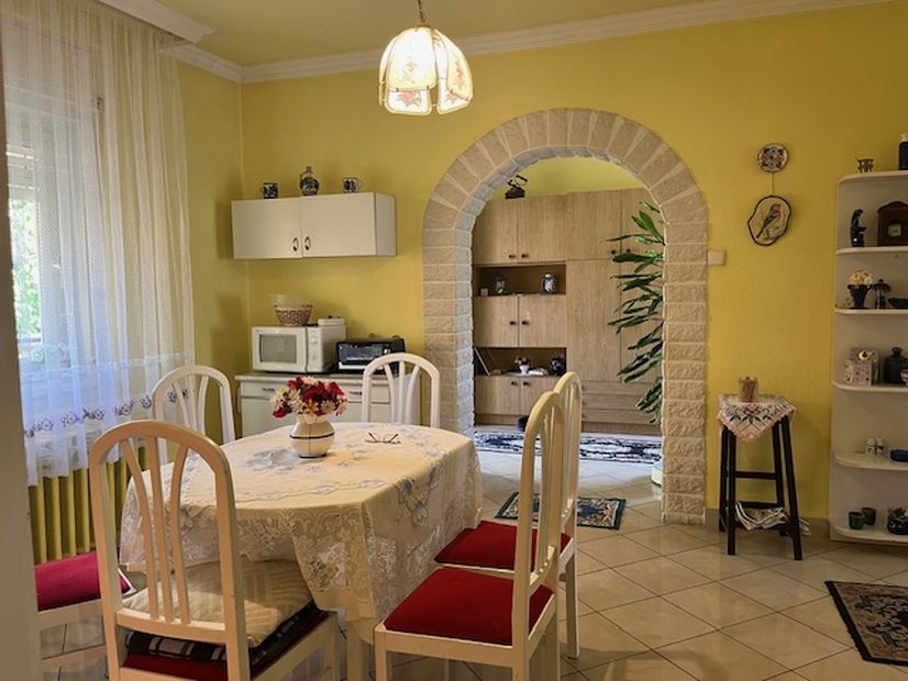 Elosztása:fedett terasz,előszoba,étkező,kis konyha,fürdőszoba 2 egymásból nyíló nagy szoba.